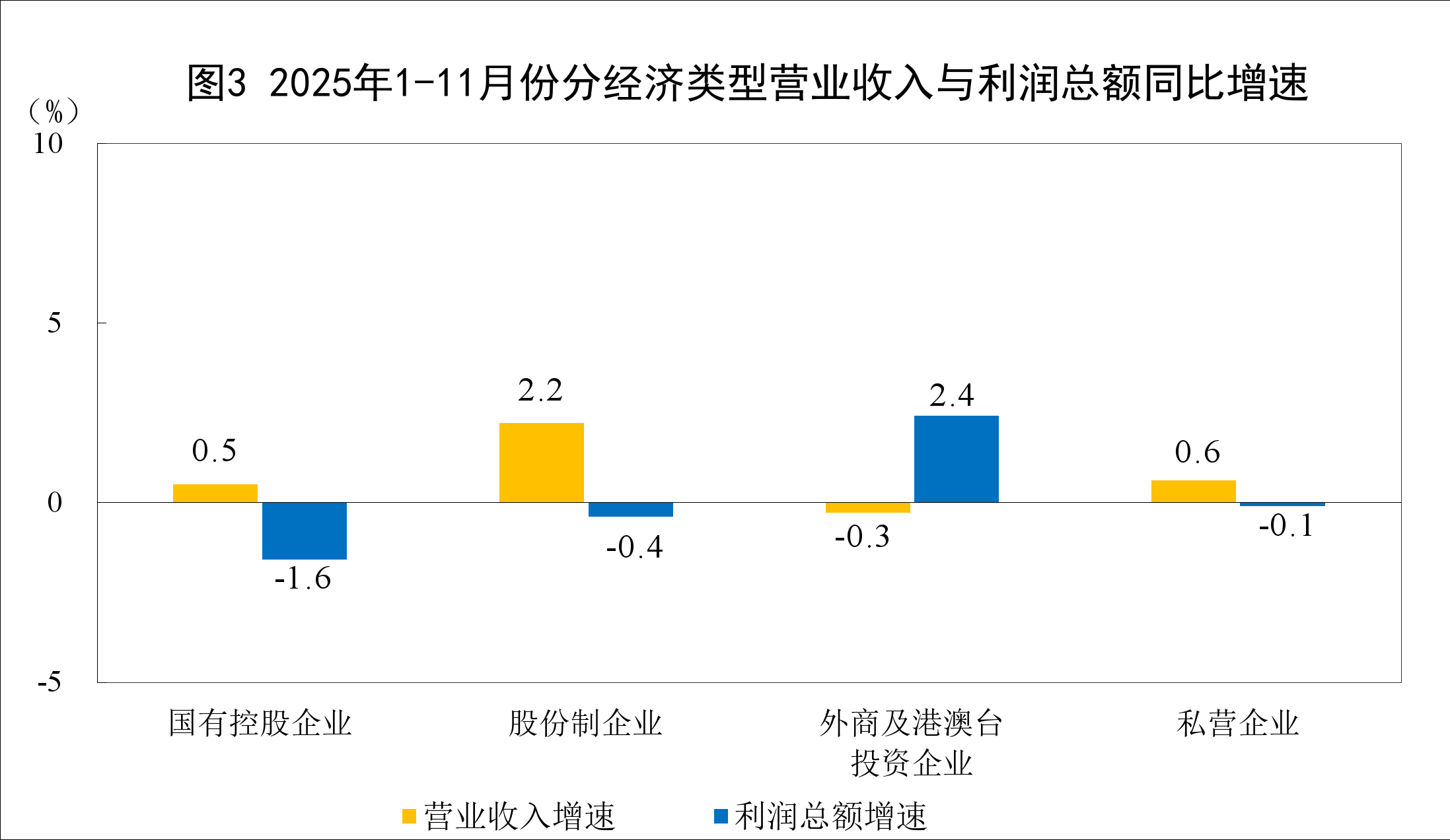 扫描或点击关心中金正在线月份,全国规模以上工业企业实现利润总额66268.6亿元,同比增加0.1%(按可比口径计较,详见附注二)。1—11月份,规模以上工业企业中,国有控股企业实现利润总额20083.6亿元,同比下降1.6%;股份制企业实现利润总额49565.6亿元,下降0.4%;外商及港澳台投资企业实现利润总额16355.3亿元,增加2.4%;私营企业实现利润总额19319.9亿元,下降0.1%。1—11月份,采矿业实现利润总额7896.3亿元,同比下降27.2%;制制业实现利润总额50317.9亿元,增加5.0%;电力、热力、燃气及水出产和供应业实现利润总额8054.4亿元,增加8.4%。1—11月份,次要行业利润环境如下:计较机、通信和其他电子设备制制业利润同比增加15.0%,电力、热力出产和供应业增加11.8%,有色金属冶炼和压延加工业增加11.1%,汽车制制业增加7.5%,农副食物加工业增加4.8%,通用设备制制业增加4.8%,公用设备制制业增加4.6%,电气机械和器材制制业增加4.2%,石油、煤炭及其他燃料加工业同比减亏,非金属矿物成品业下降4.6%,化学原料和化学成品制制业下降6.9%,纺织业下降8.2%,石油和天然气开采业下降13.6%,煤炭开采和洗选业下降47.3%。1—11月份,规模以上工业企业实现停业收入125.34万亿元,同比增加1.6%;发生停业成本107.17万亿元,增加1.8%;停业收入利润率为5.29%,同比下降0.08个百分点。11月末,规模以上工业企业资产合计189.28万亿元,同比增加4.8%;欠债合计109.96万亿元,增加5.0%;所有者权益合计79.32万亿元,增加4.5%;资产欠债率为58.1%,同比上升0.1个百分点。11月末,同比增加5.5%;产成品存货6.92万亿元,增加4.6%。1—11月份,规模以上工业企业每百元停业收入中的成本为85.50元,同比添加0.18元;每百元停业收入中的费用为8.39元,同比削减0.06元。11月末,规模以上工业企业每百元资产实现的停业收入为74.4元,同比削减2.4元;人均停业收入为186.5万元,同比添加5.7万元;产成品存货周转为20.5天,同比添加0.6天;应收账款平均收受接管期为70.4天,同比添加3.7天。500)this.width=500 align=center hspace=10 vspace=10 alt=国度统计局:1—11月份全国规模以上工业企业利润增加0.1%>500)this。width=500 align=center hspace=10 vspace=10 alt=国度统计局:1—11月份全国规模以上工业企业利润增加0。1%